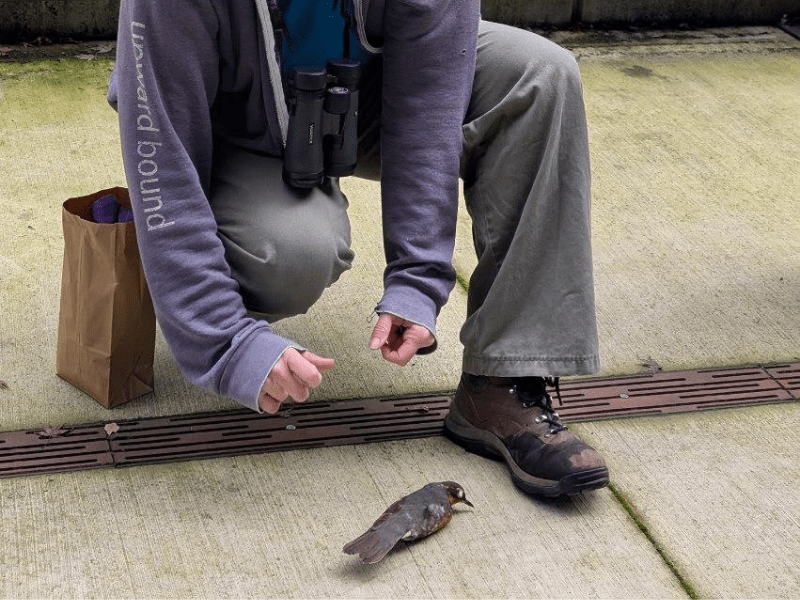 My name is Ser (they/them) and I’m an AmeriCorps member serving as the Urban Conservation Educator with Birds Connect Seattle. This is my second term with Birds Connect and over the last year, I have spent a lot of time coordinating the Seattle Bird Collision Monitoring Project, a community science project designed to improve our understanding of how many bird-window collisions occur in the greater Seattle area and where collisions occur, to engage people with the issue of bird-window collisions and to prevent future collisions.